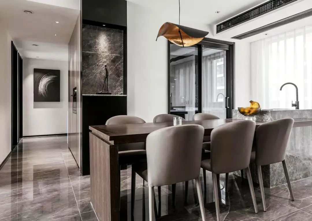 將經典融合時尚,造就神韻精品,讓心靈遠離喧囂與浮躁,緊靠寧靜與自由。灰與白的世界,輔以連紋巖板天然紋理。陽光照射下的表面凸顯生活高級質感。